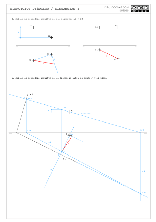 He publicado nuevos apuntes de Dibujo técnico II: ejercicios distancias diedrico
