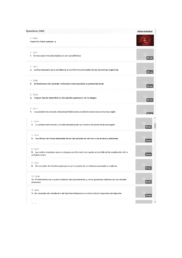Kahoot con 100 preguntas de fisio animal I