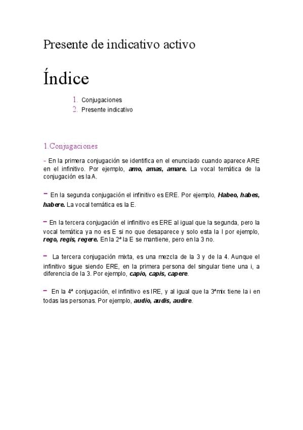 apuntes de conjugaciones y presente indicativo