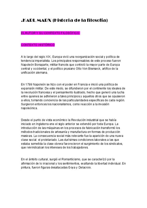 apuntes de karl marx para 2ºbachillerato y ebau