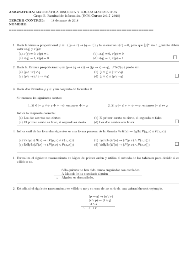 He publicado nuevos examenes de 1º Matemática Discreta y Lógica Matemática I: MDL 2018 1º PARCIAL.pdf