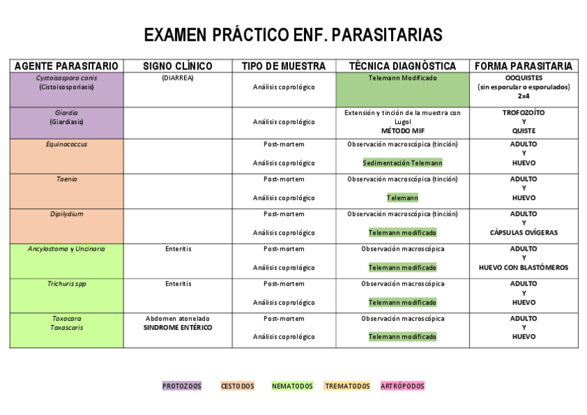 He publicado nuevos apuntes de 4º Enfermedades Parasitarias: tabla-parasitarias-practicas.pdf