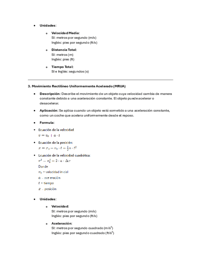 Un recopilatorio de los temas y formulas vistas en la primera unidad de fisica 1 "Cinematica", los temas contenidos son: MRU, Velocidad media, MRUA, caida libre y tiro vertical, movimiento parabolico, MCU y MCUA