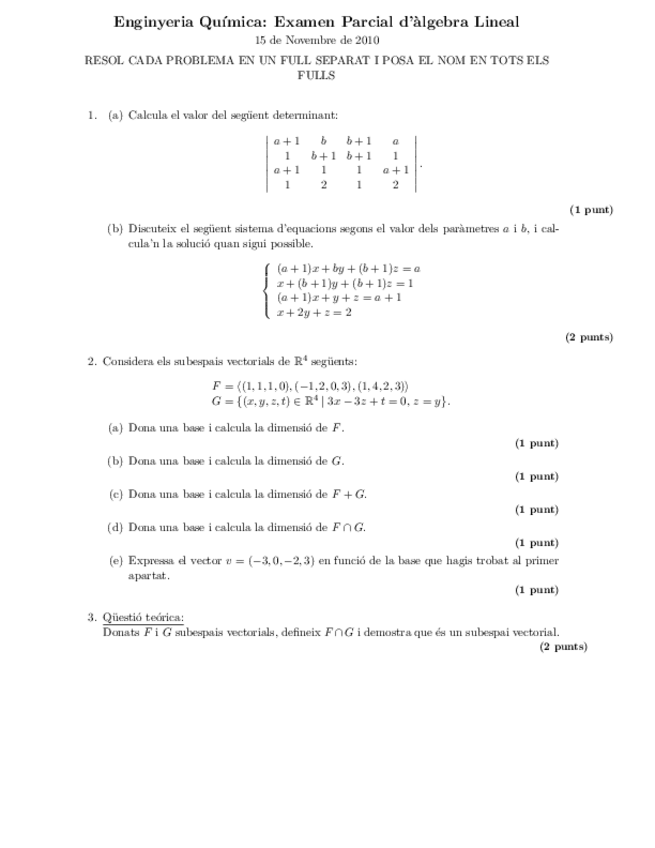 He publicado nuevos examenes de 1º Álgebra Lineal: Questions Examen Parcial 2010(1).pdf