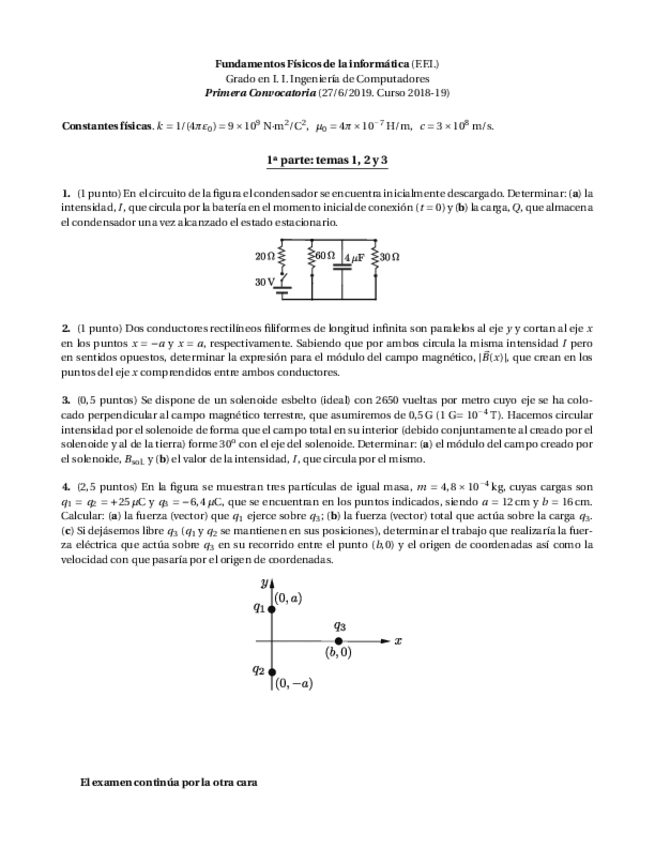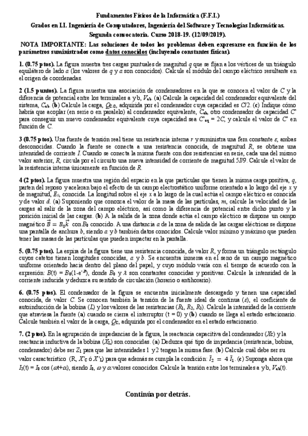 He publicado nuevos examenes de 1º Fundamentos Físicos de la Informática: Convocatoria oficial Junio 2018/19