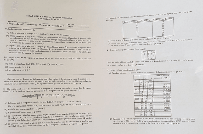 He publicado nuevos examenes de 1º Estadística: Examen Final 16/17