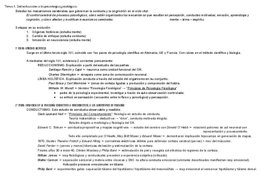 resumen del primer tema de introducción de la asignatura psicología fisiológica.