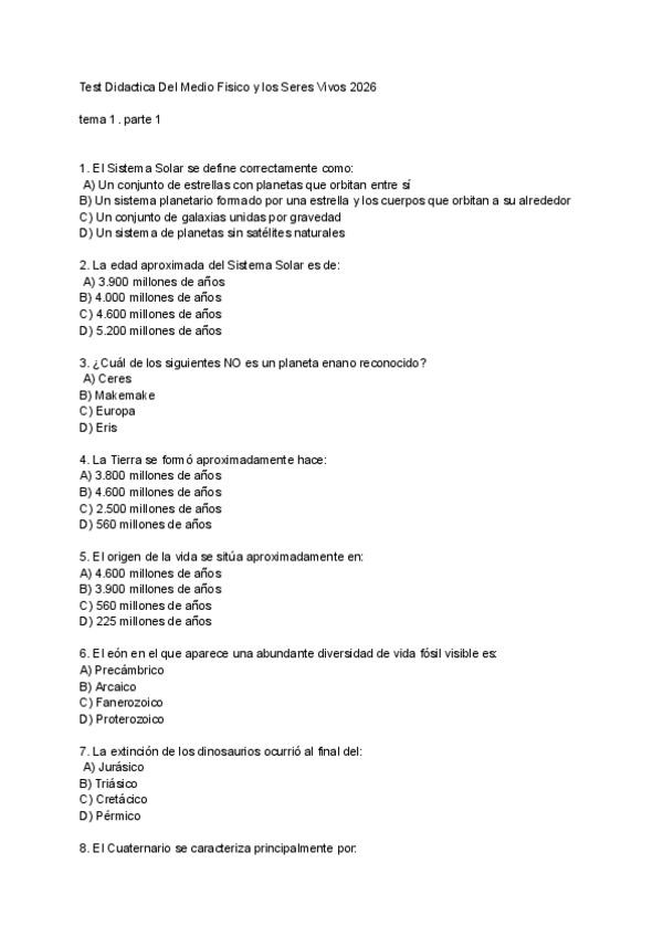 Test seres vivos tema 1. Parte 1 Hecho por mí.