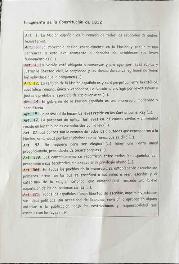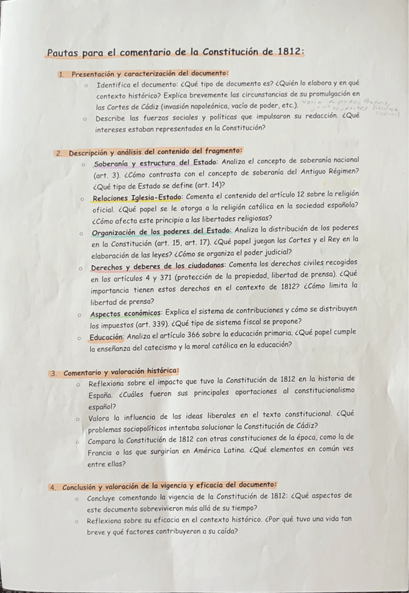 Comentario de la Constitución de 1812. El documento tiene las pautas claves y los fragmentos del comentario. Después os he dejado el comentario hecho por mi, tanto la presentación, como el análisis del contenido y el comentarios con sus respectivas conclu