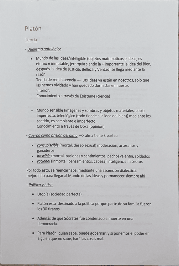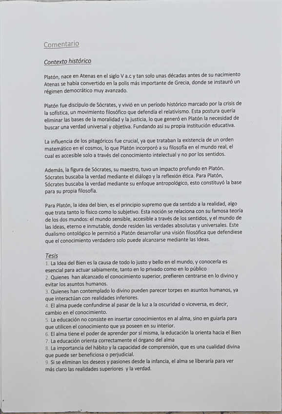Apuntes de Platón, su teoría, el contexto del análisis del texto y relaciones con otros autores ??
