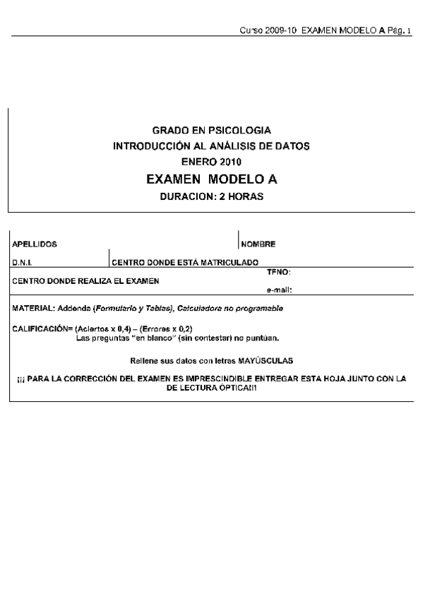 He publicado nuevos examenes de 1º Diseño y Análisis de Datos en Psicología I: Exámenes