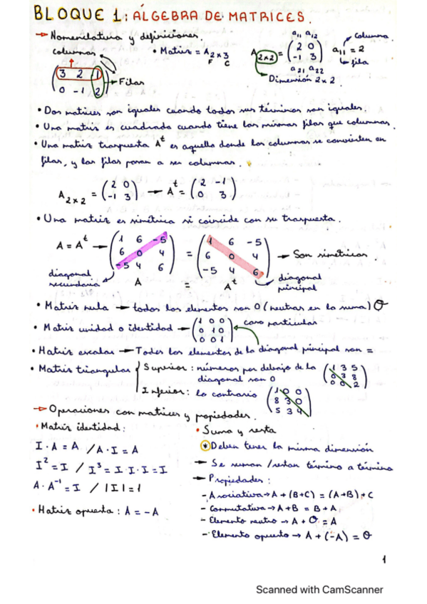 He publicado nuevos apuntes de Matemáticas II: Todo sobre Álgebra de matrices Bloque 1.pdf