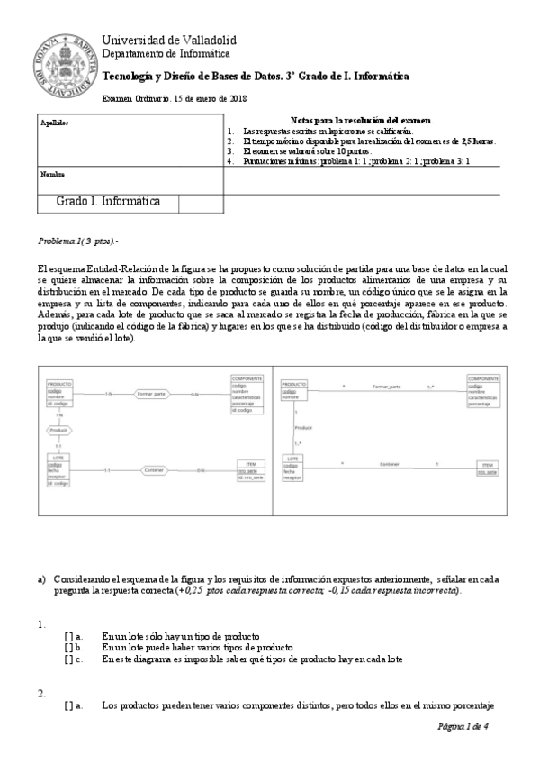 He publicado nuevos examenes de 3º Tecnología y Diseño de Bases de Datos: Examen ordinario 2018.pdf