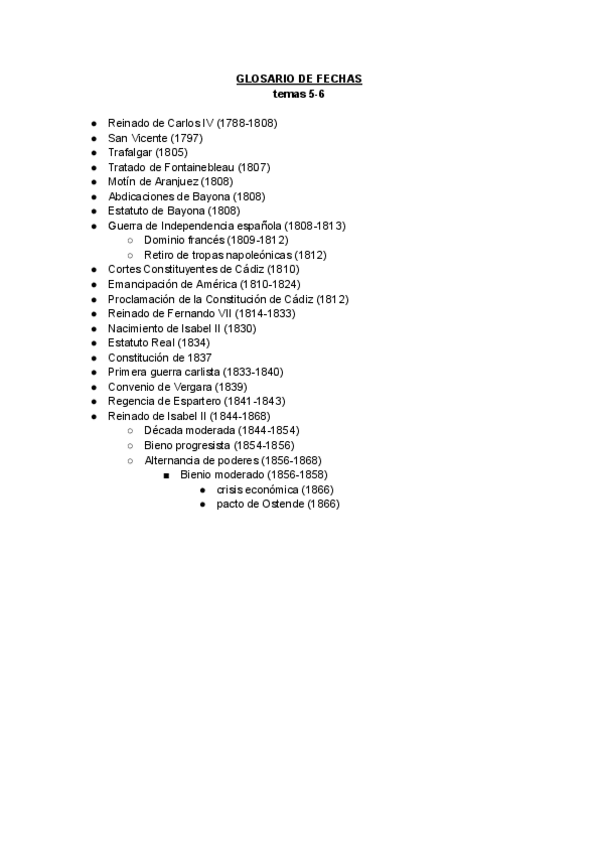Glosarios de fechas Historia