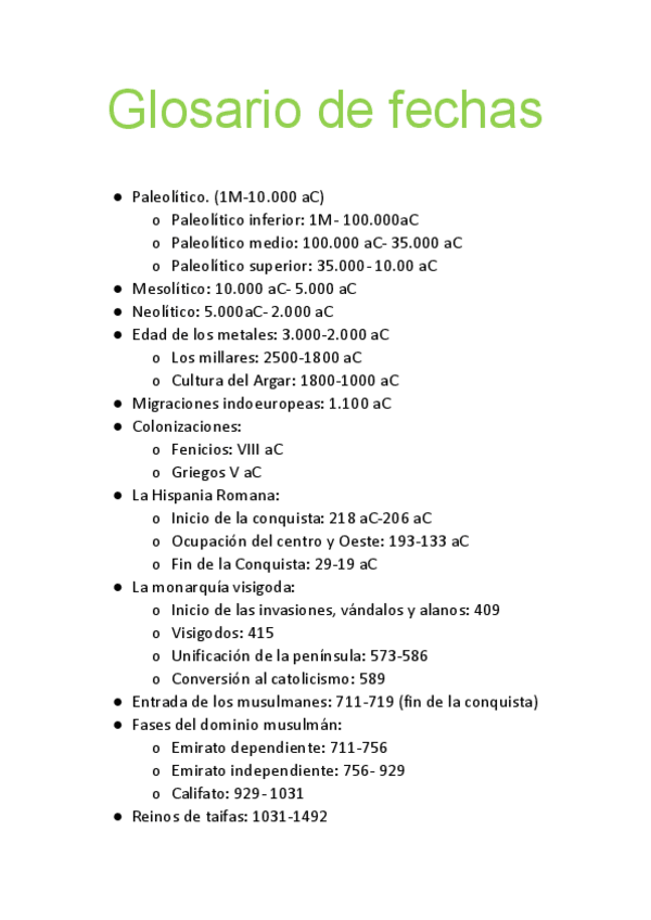 He subido unos glosarios de fechas clave de Historia de España. Son muy útiles para recordar cómo se organizaban los temas.