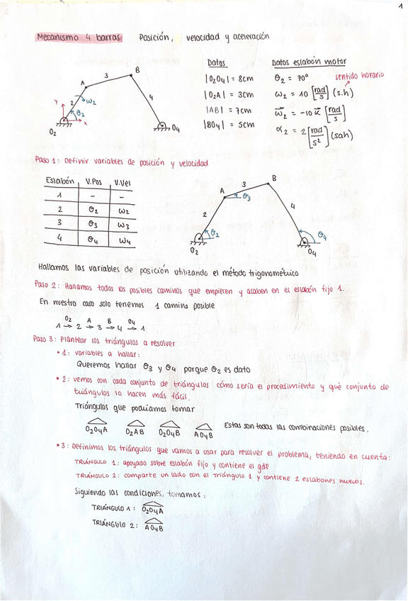 He publicado nuevos apuntes de 2º Sistemas Mecánicos: Mecanismo 4 barras EXPLICADO hasta aceleracion.pdf