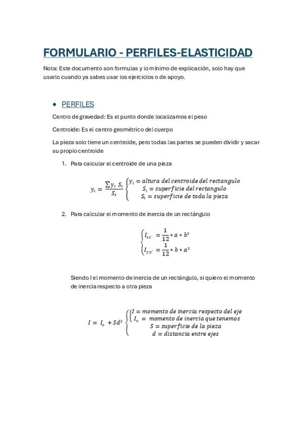 He publicado nuevos apuntes de 2º Resistencia de Materiales: FORMULARIO-ELASTICIDAD-PERFILES.pdf