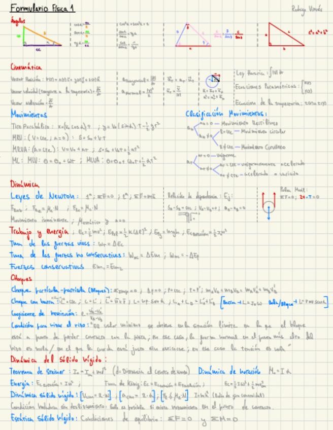 RESUMEN FINAL FISICA 1. Incluye todas las formulas relevantes para el exámen, las que no están es porque no son útiles.