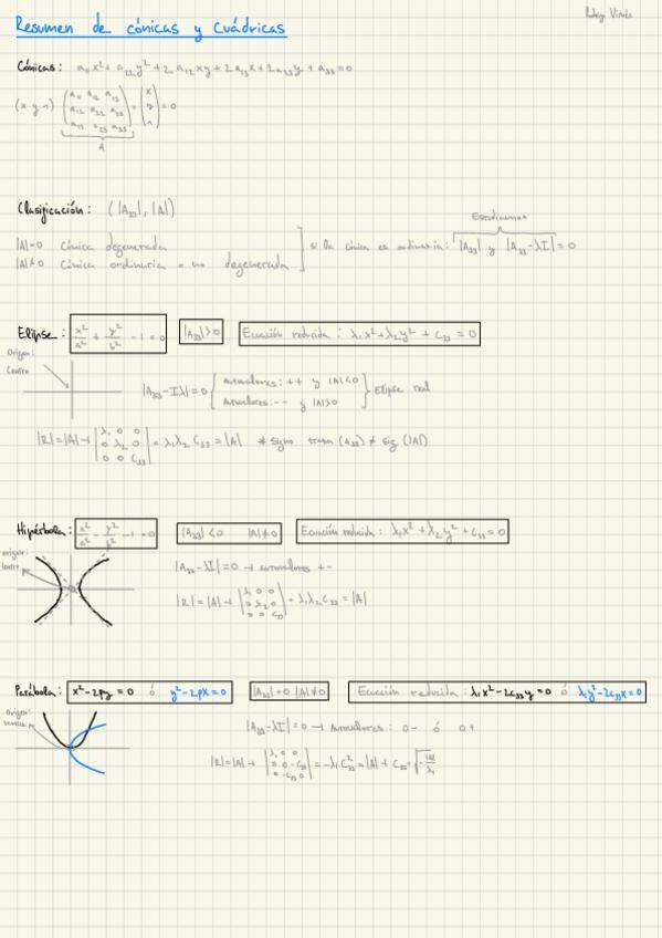 Resumen completo, con esto no tienes ni porque mirarte los apuntes, toda la teoría de cónicas y cuádriacas pasada a limpio.