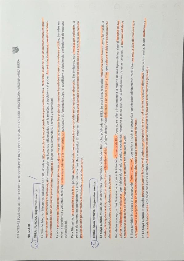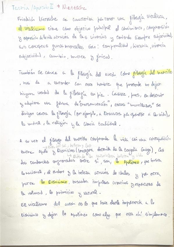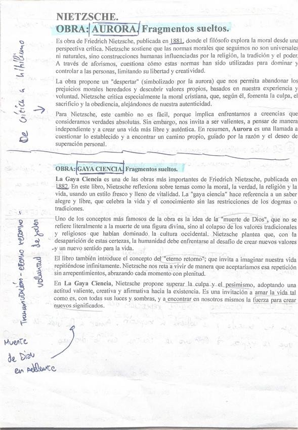 Toda La teoría filosófica de Nietzche que entra en la PAU sintetizada de forma que sea literalmente lo que tienes que poner en el apartado dos quitando la parta que tengas que poner en el primer apartado.