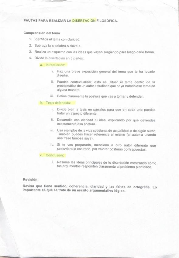 Intrucciones y estructura de la disertacion de la PAU, hecho por profesora de Filosofía