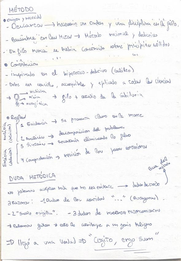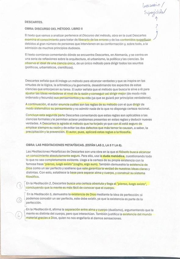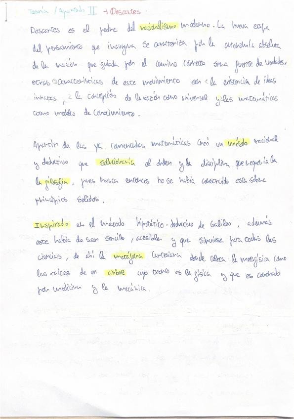 Teoria de Descartes para el apartado dos perfecta para la PAU, corregida por profesora de fiosofia.