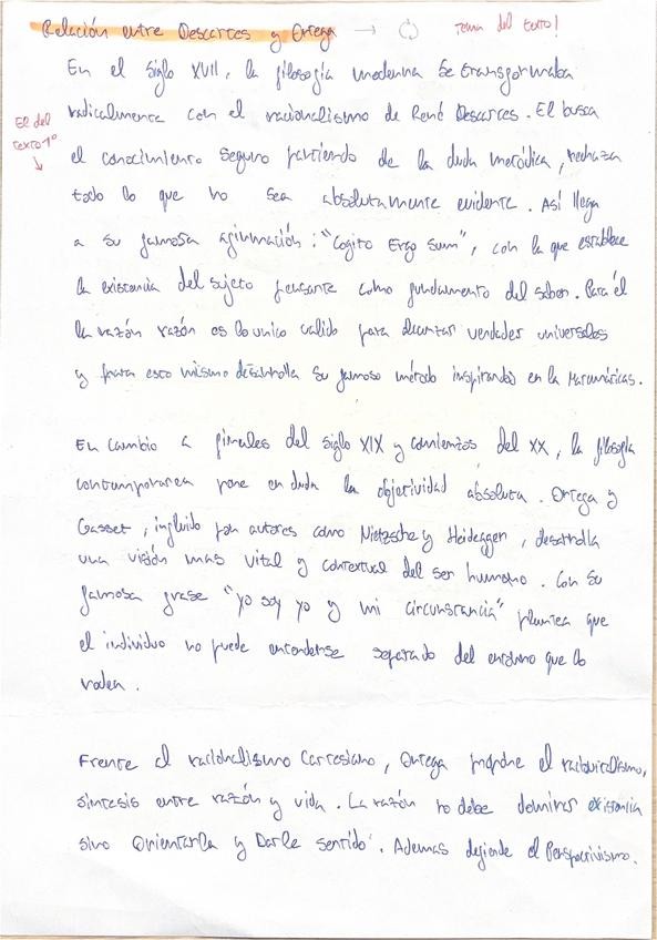 Relacion entre autores entre Descartes y Ortega corregida por profesora de filosofia. Para la PAU