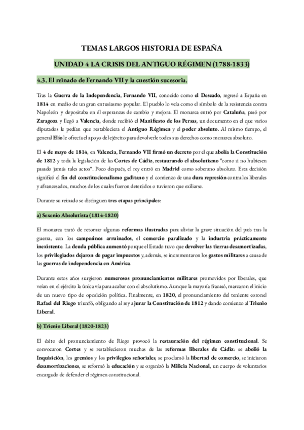 Mis resumenes del 4.3 HISTORIA DE ESPAÑA (Resto de temas en mi perfil)