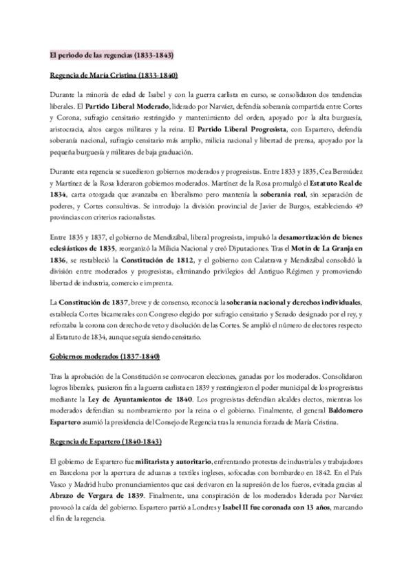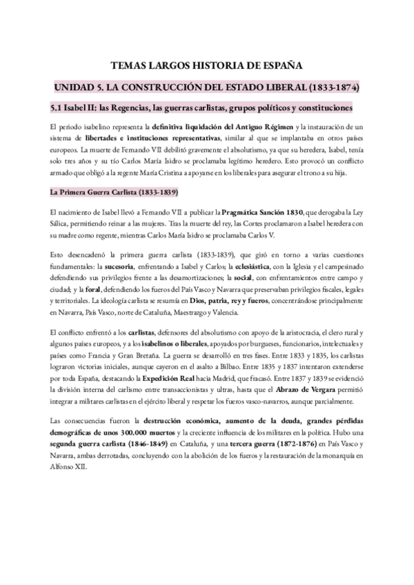 5.1 HISTORIA DE ESPAÑA RESUMEN Isabel II: las Regencias, las guerras carlistas, grupos políticos y constituciones
