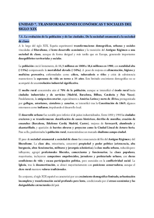 Unidad 7 todos los temas resumidos apuntes PAU Historia de España