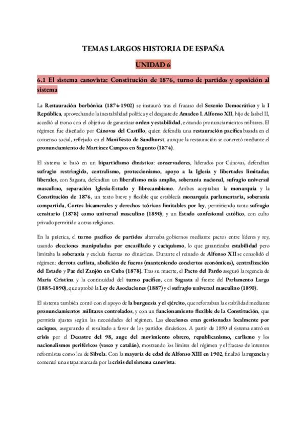 Unidad 6 todos los temas resumidos apuntes PAU Historia de España