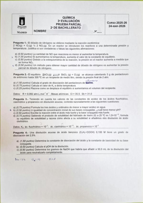 He publicado nuevos examenes de 2º Química: Parcial 3a Evaluacion - Equilibrios y Acido Base.pdf