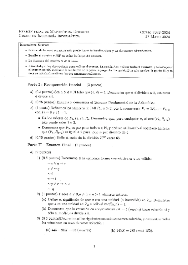 He publicado nuevos examenes de 1º Matemática Discreta: Examen1convMatDisc2024.pdf