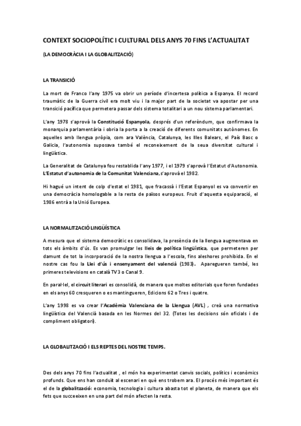 He publicado nuevos apuntes de Lengua Valenciana y Literatura II: Context-historic-dels-anys-70-fins-actualitat.pdf