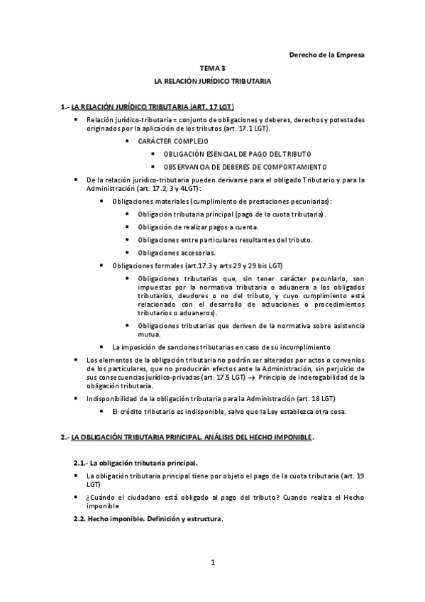 He publicado nuevos apuntes de 1º Derecho de la Empresa: Derecho Tributario