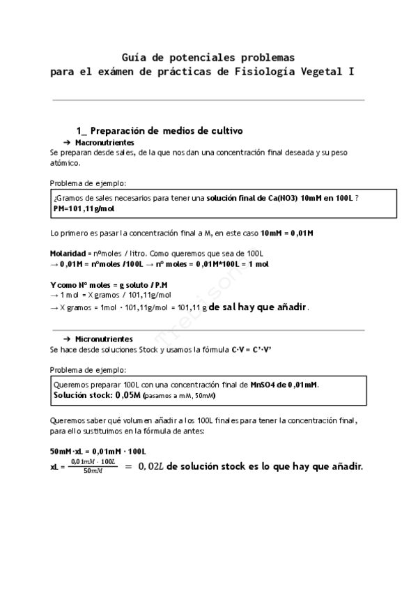 ¡Hola! Para los que hagáis Fisiología Vegetal I tengo en mi perfil una guía paso a paso de todos los tipos de problemas que pueden caer en el examen de prácticas. Además sirven para hacer las cuentas para vuestro informe de prácticas, solo hay que cambiar los números. Miradla anda, que está muy bien creo yo!!! Besis😘