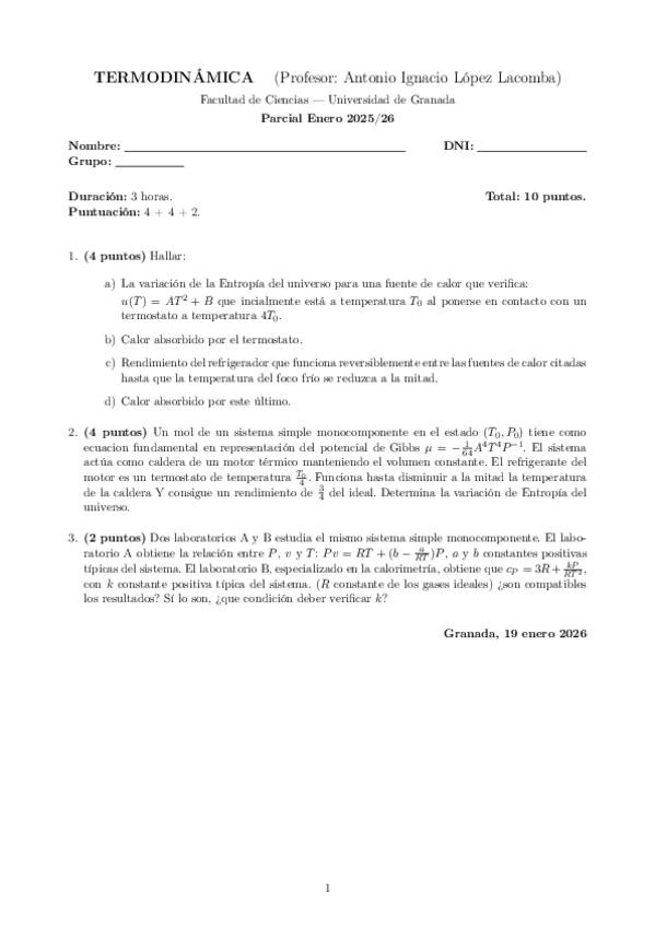 He publicado nuevos examenes de 2º Termodinámica: Parcial-Enero-2026.-Lacomba..pdf
