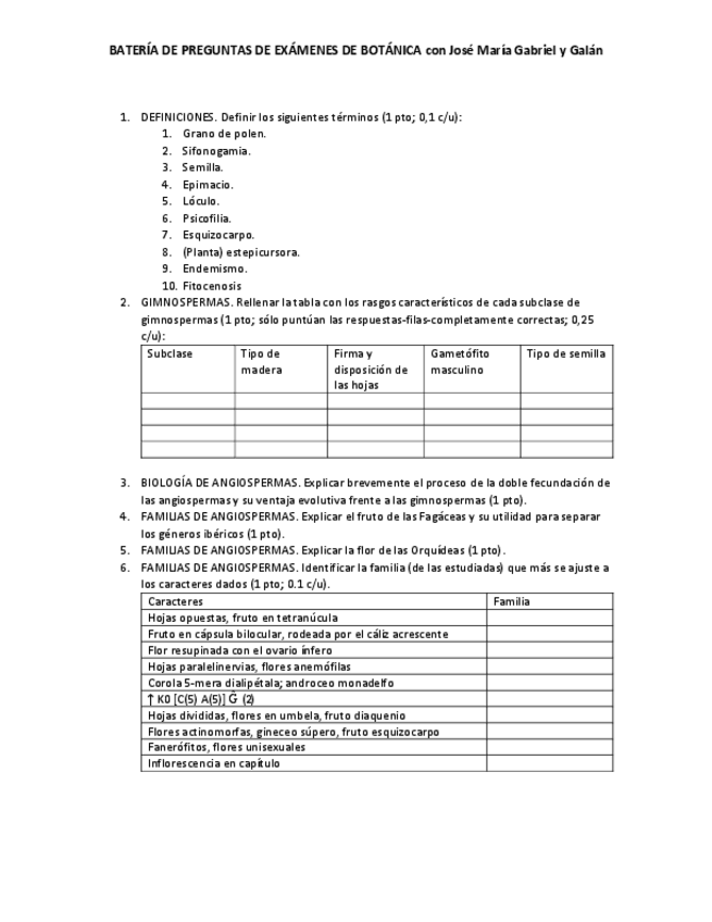 He publicado nuevos examenes de 2º Botánica: Examen modelo