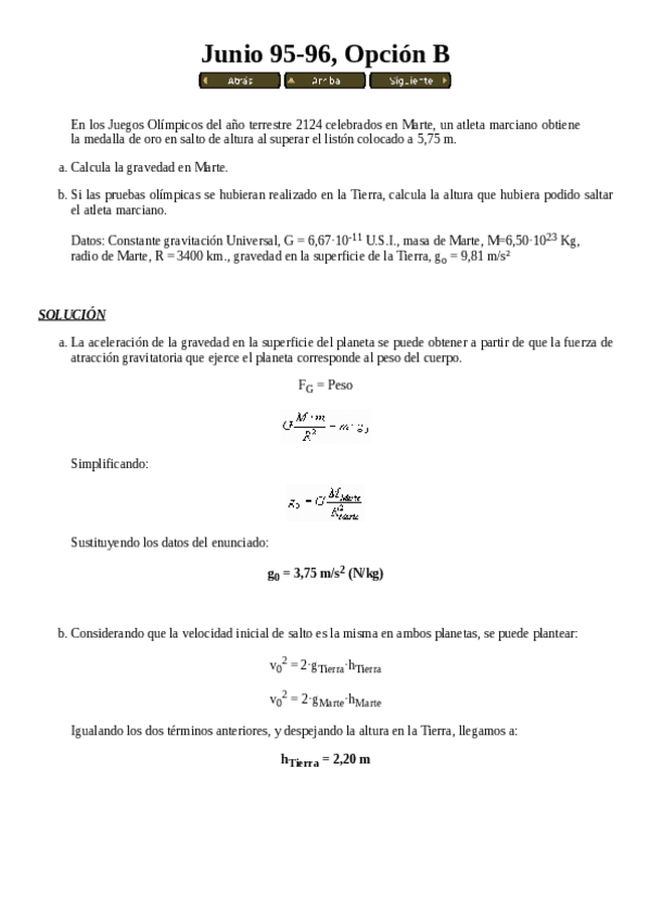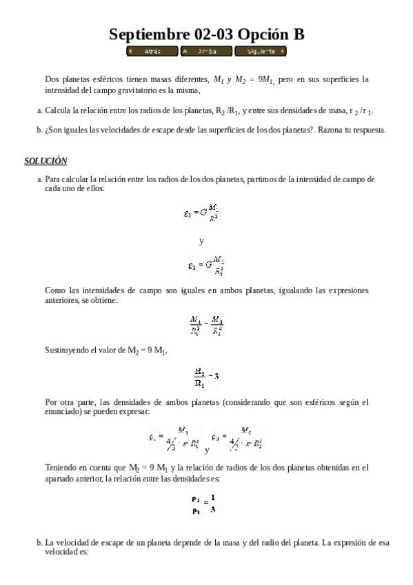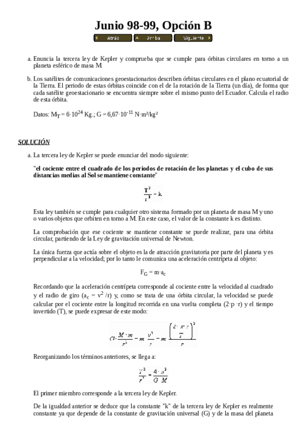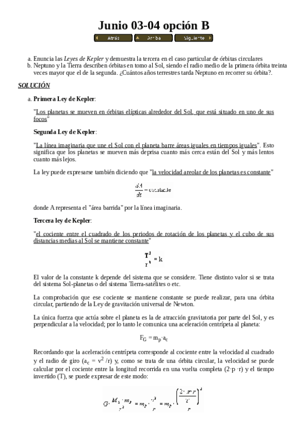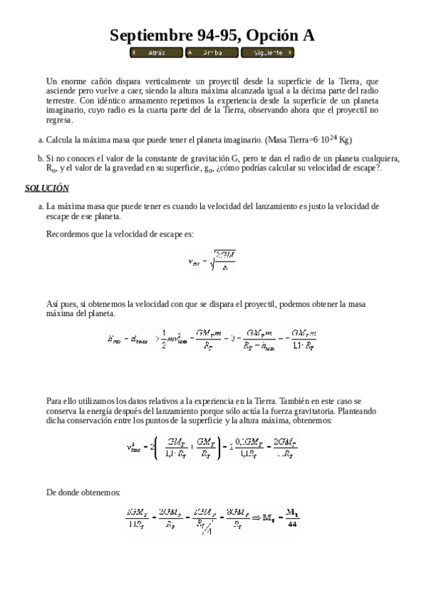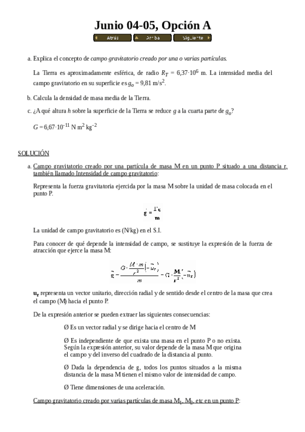 He publicado nuevos examenes de 1º Física 1: Preguntas exámenes antiguos - Gravitación