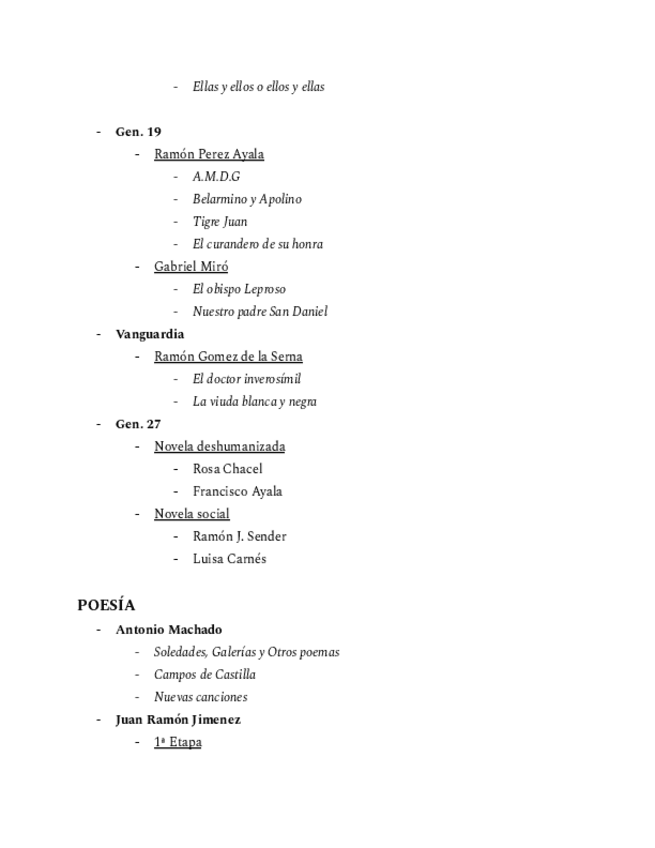 Todas las etapas con autores y obras más destacadas