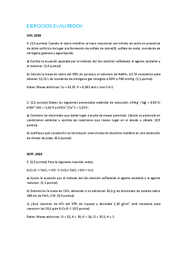 He publicado nuevos apuntes de 2º Química: EJERCICIOS-EVAU-REDOX-1.pdf