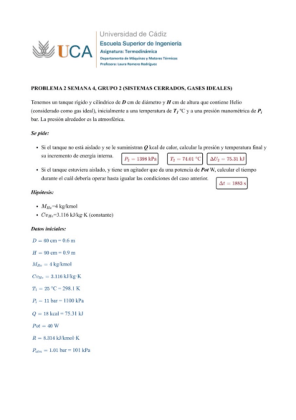 Seminario 1 termodinámica completo. Ejercicios de los dos grupos