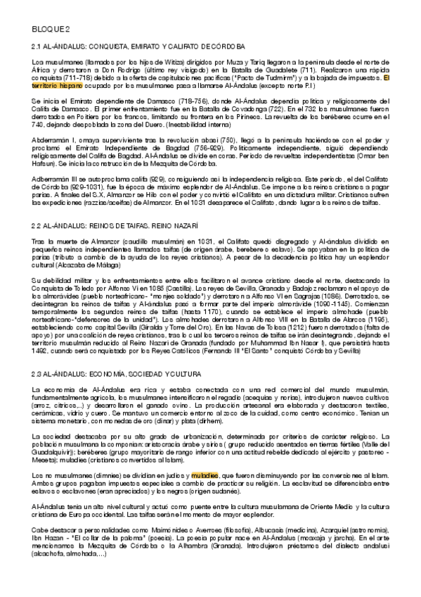 Historia de España 2º BACH resumido en perfil.