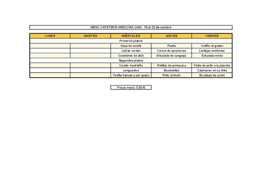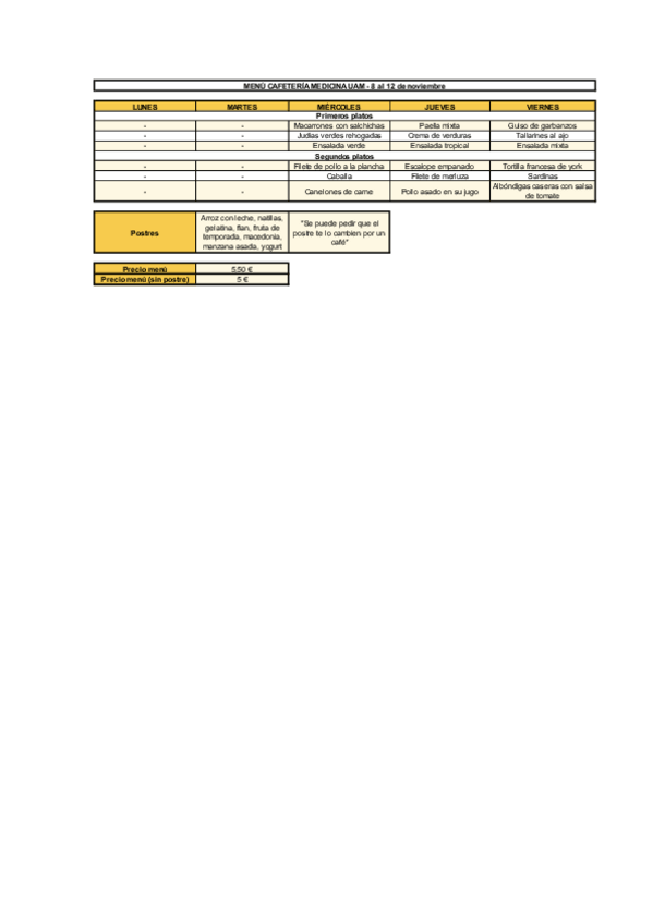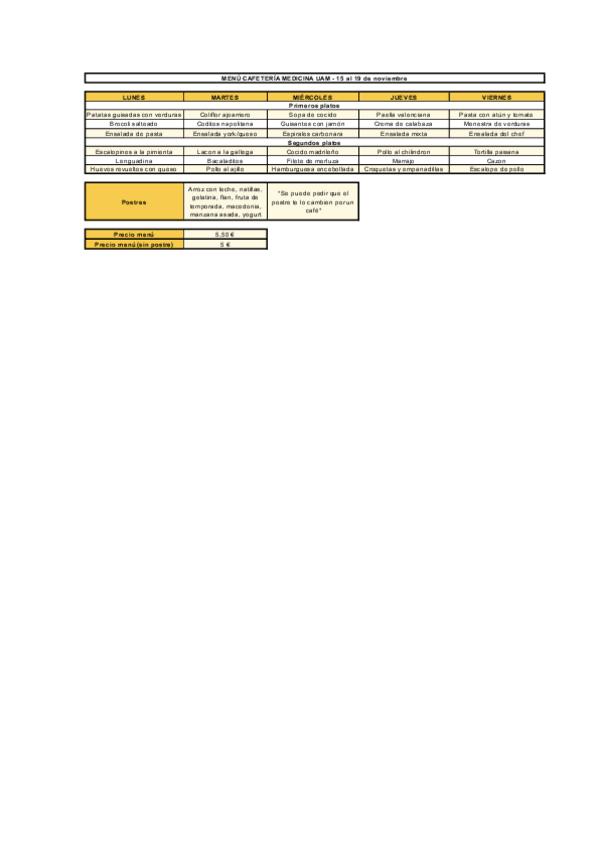 Menú cafetería NOVIEMBRE