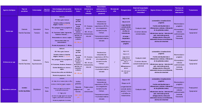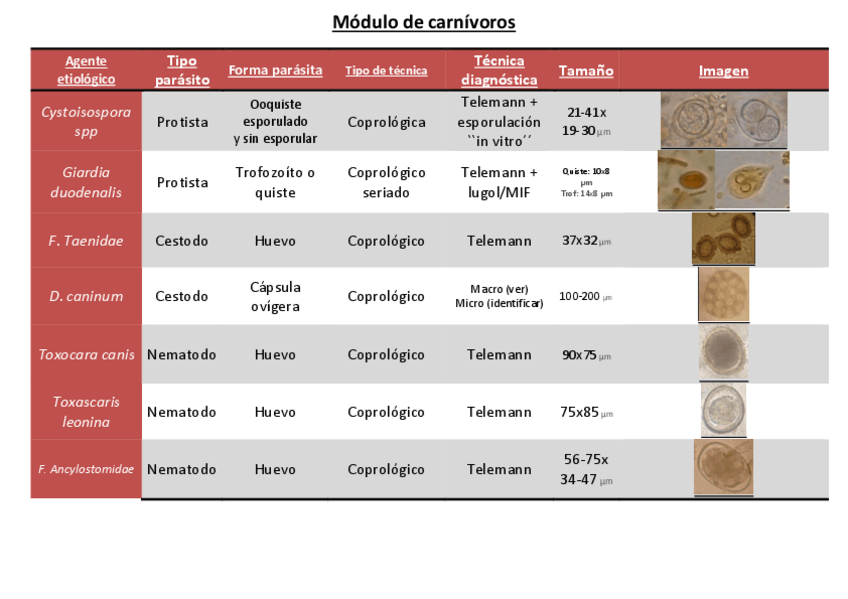 He publicado nuevos apuntes de 3º Enfermedades Parasitarias: TABLAS LABORATORIO PRÁCTICAS CARNIVOROS