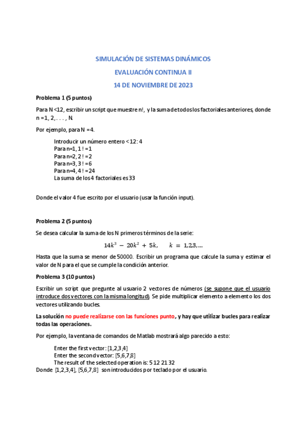 He publicado nuevos examenes de 2º Simulación de Sistemas Dinámicos: Solucion-examen-3-matlab.pdf