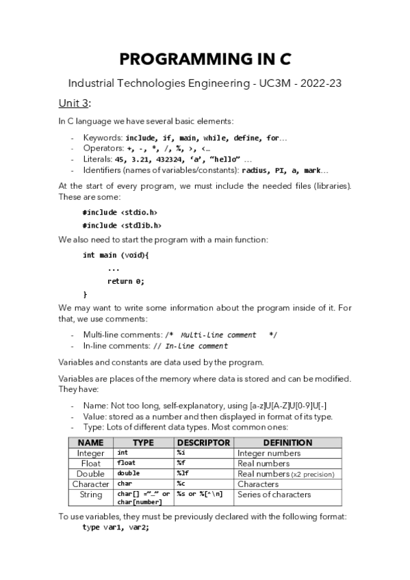 He publicado nuevos apuntes de 1º Programación: Resumen-programacion-en-C-Ingenieria-en-Tecnologias-Industriales-1er-cuatrimestre.pdf