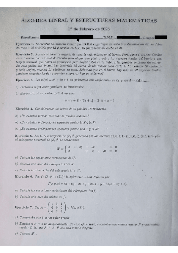 He publicado nuevos examenes de 1º Álgebra Lineal y Estructuras Matemáticas: Extraordinaria-ALEM-2022-2023.pdf