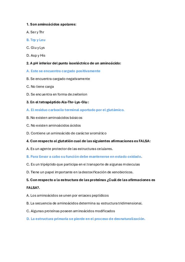 He publicado nuevos ejercicios de 1º Bioquímica Estructural: TIPO TEST TEMAS 1-7 BIOQUIMICA