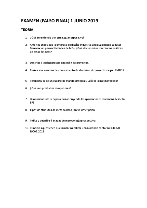 He publicado nuevos examenes de 4º Gestión del Diseño y Desarrollo de Nuevos Productos: Falso-final-2019-teoria.pdf